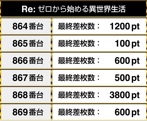 閉店時は複数台にわたってプラスptが連なっている場所があり、なかには3000ptを上回る台もあった。