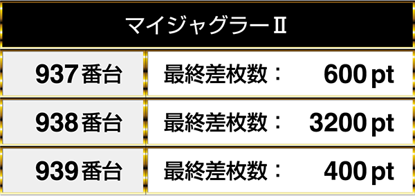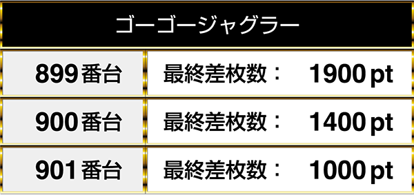 『ゴーゴージャグラー』では3台が並んで1000ptオーバー!!