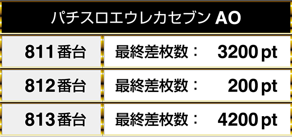 4000ptを上回るデータが残っていた『パチスロエウレカセブンAO』は、3台すべてがプラスptとなっていた。