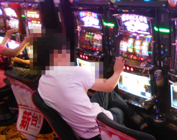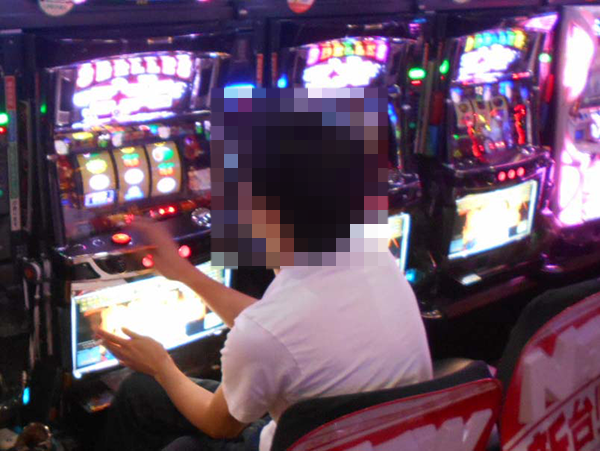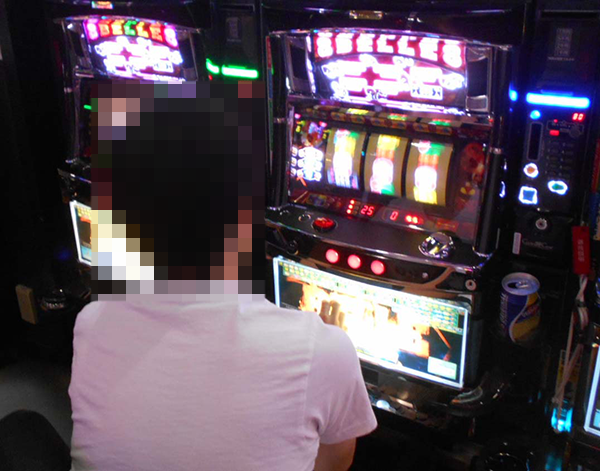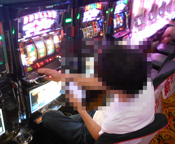 にぎわっているホール内を歩いていくと、とくに活気づいたパチスロフロアでイキイキとレバーを叩く姿を目にした。