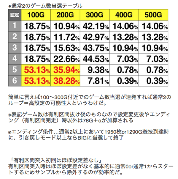 また、モード振り分けも要チェックで、設定5と6は通常2のループ率が飛び抜けて高い。