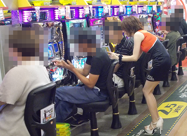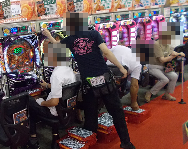 「GI優駿倶楽部」や「ニューアイムジャグラーEXーKT」などでプレイヤーがパフォーマンスを披露しており、シマ全体が活気づいていた。