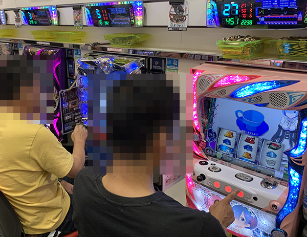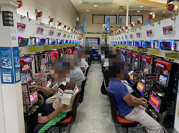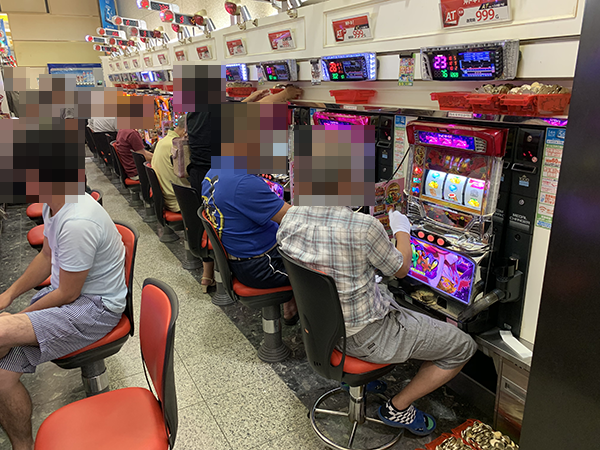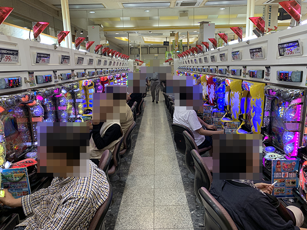 ホール内には多くのプレイヤーが集まっており、パチンコとパチスロの両方が活気づいていた。