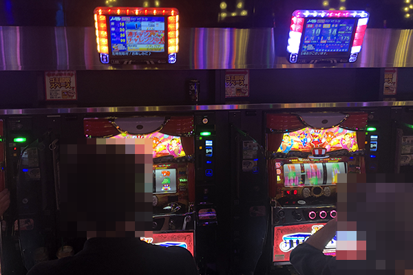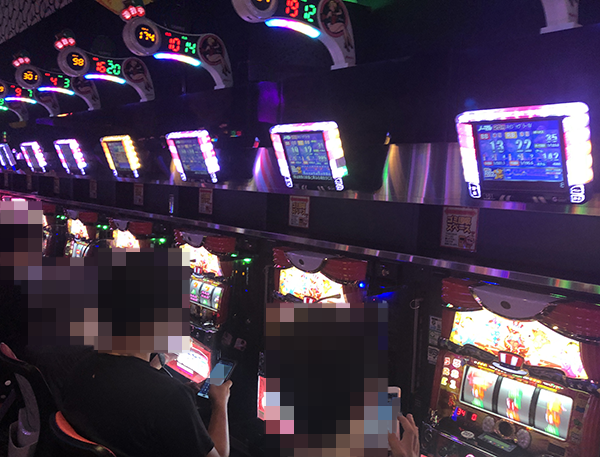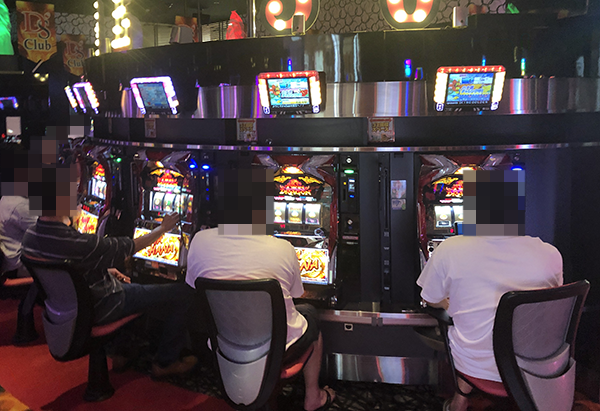 8台設置の『マイジャグラーⅣ』が滞在時はつねに満席!