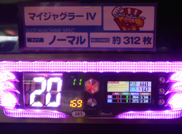 この日、ボーナス回数のBEST1の座に輝いたのは『マイジャグラーⅣ』の65回!