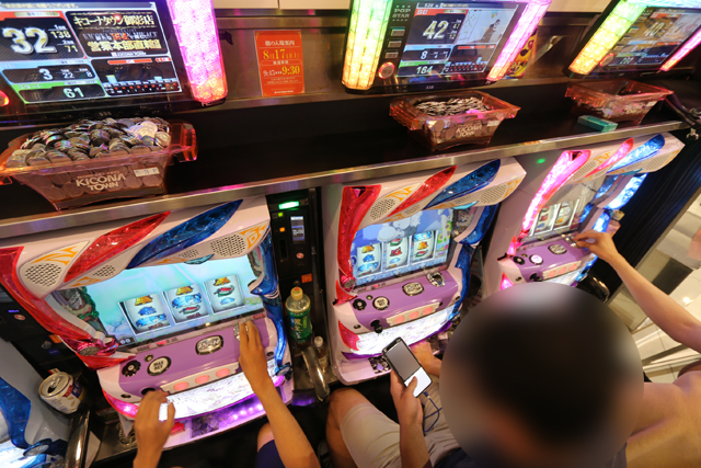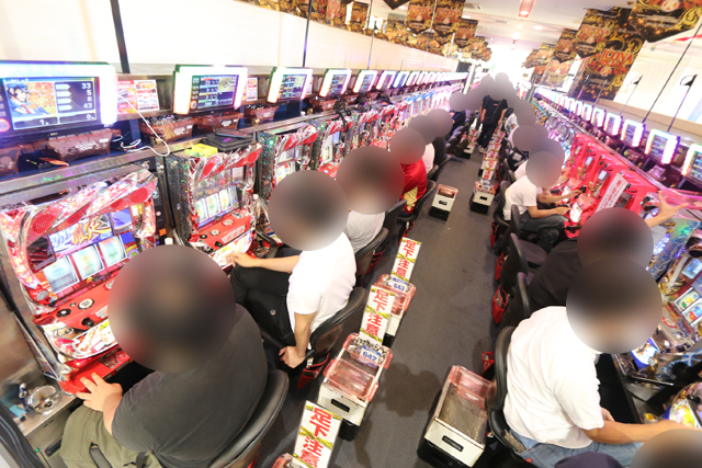 さらに『バジリスク〜甲賀忍法帖〜絆』『スーパーミラクルジャグラー』でそれぞれ4、5箱の猛爆台を確認。誰もが「全台」や「最大限」を明確に意識させられる鉄火場で、店内はまさに正真正銘の終日大盛況となった。