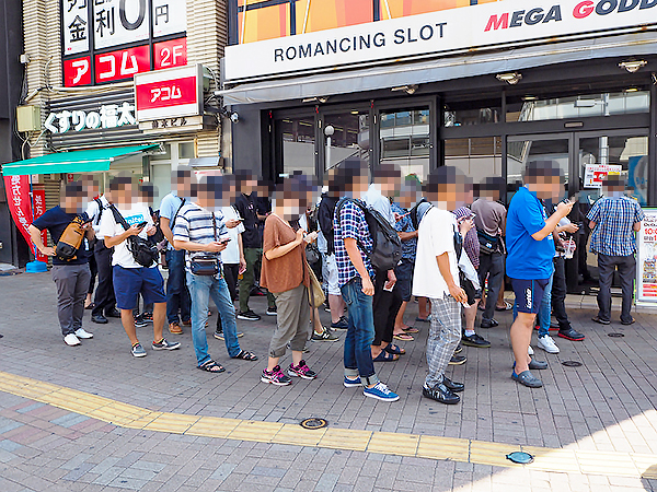 開店前から100人を超えるプレイヤーが足を運んでおり、遊技開始を前にして高揚した表情を見せていた。