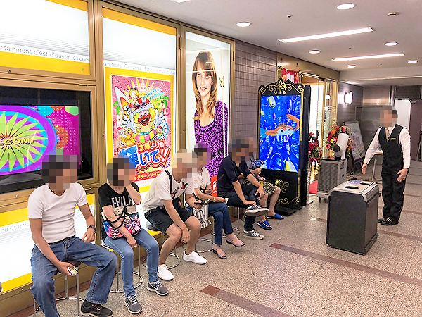 開店前からたくさんのプレイヤーのプレイヤーが集合。会話を楽しみながら入店を待つ、実に和やかなシーンを目にしている。