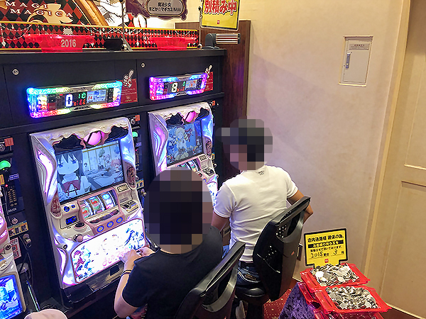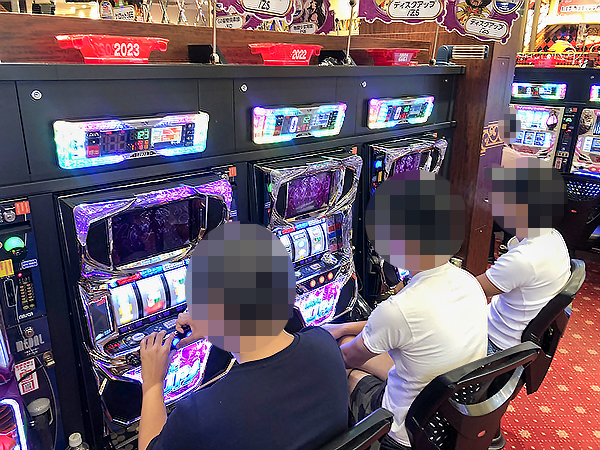 開店直後は1000円/47枚パチスロの「パチスロディスクアップ」が満席となっており、同機種の支持の厚さがうかがえた。