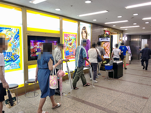 開店前からたくさんのプレイヤーが列を形成。各人とも遊技開始を待ちきれない様子だった。