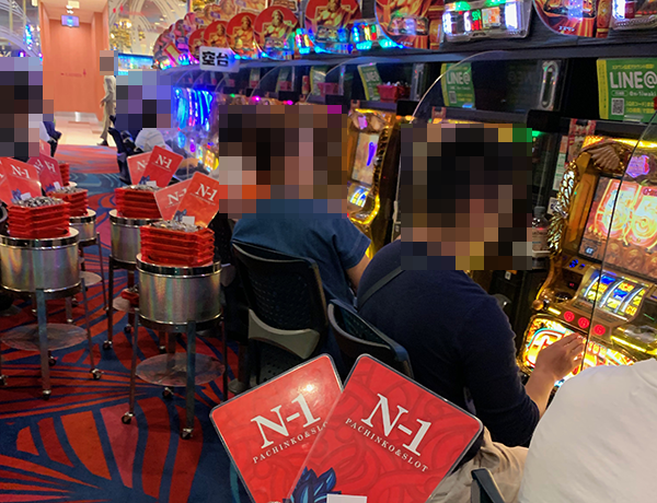 16時半ごろにホール内をまわっていくと、パチンコとパチスロの両方から活気が感じられた。