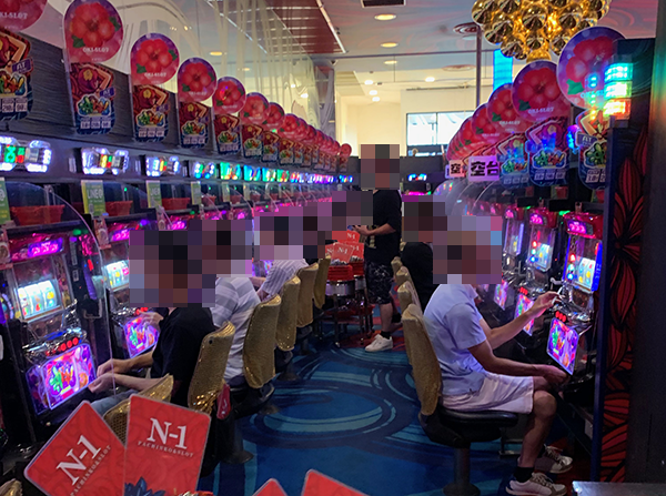 パチスロの『ミリオンゴッド-神々の凱旋-』コーナーやパチンコの海物語コーナーなど、いくつものコーナーが盛況じゃった。
