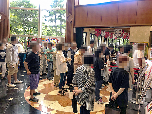 開店前からおよそ50人のプレイヤーが集合。各人、入店の時刻が来るのを心待ちにしているようだった。