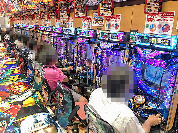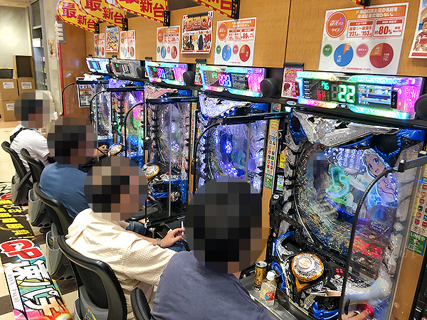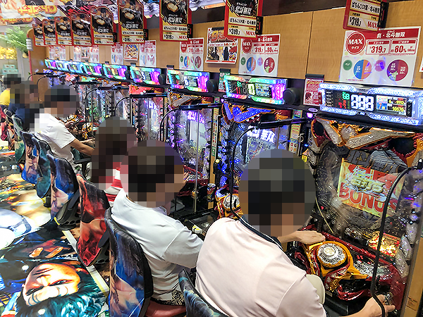 14時半ごろの4円パチンコでは「ぱちんこCR真・北斗無双」や「ぱちんこCR真・北斗無双 第2章」、「CR真・花の慶次2〜漆黒の衝撃 2400」が盛況で、微笑ましいシーンを随所で目にしている。