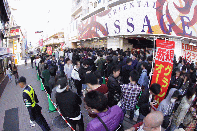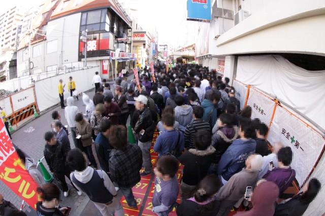 と思いたくなるのは無理もなく、その人垣は駅前から店舗をはるかに超えて数百メートル、いや1km近くになるのではないか?