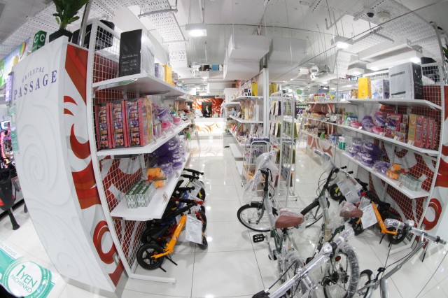 賞品コーナーは、大人気の折り畳み自転車や、キャラクターグッズ、美味しそうな菓子類とアイテム満載。