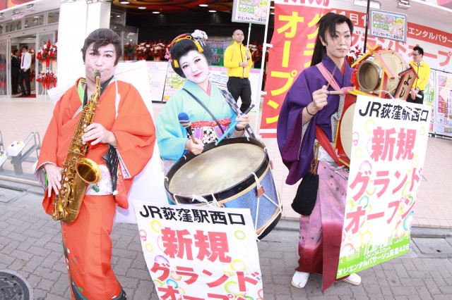 店前で演奏しながら駅前まで練り歩くその姿に、『ハーメルンの笛吹き男』のくだりのようについて行くと多くの人が行き交う駅前でPR活動を展開。