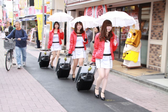 そして極めつけはキャリーバッグの日傘をさした女の子3人がスクランブル発進!