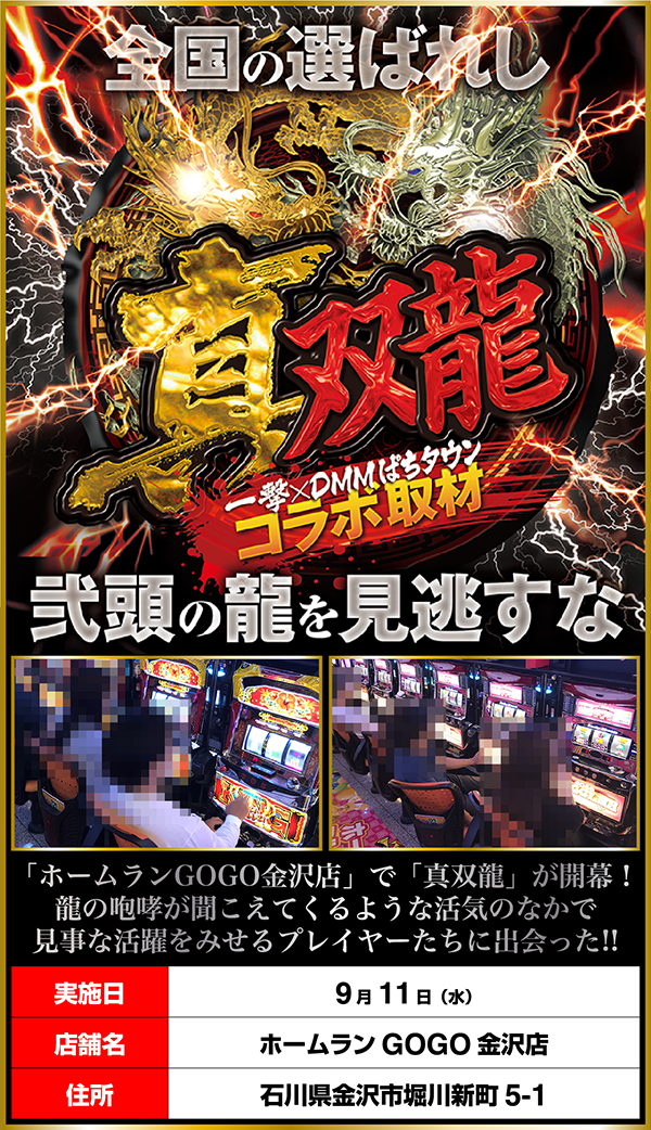 金沢駅と北鉄金沢駅の2つの駅から徒歩圏内に位置している「ホームランGOGO金沢店」を舞台に「真双龍」を敢行。