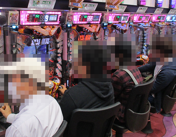 イキイキとハンドルを握っている姿がズラリと並んでいる光景は壮観。ひとりひとりが楽しそうに遊技をおこなっていた。