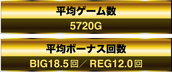 1日を通した平均ゲーム数は4378G。平均ボーナス回数はBIGとREGをあわせて39.5回であった。
