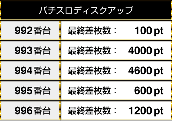 5台が固まってプラスptとなっていた場所は、『パチスロディスクアップ』にもあった。