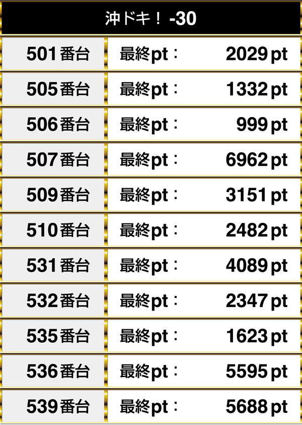 半数以上の台がプラスptを記録した『沖ドキ!-30』には、6000ptを上回る台もあった。