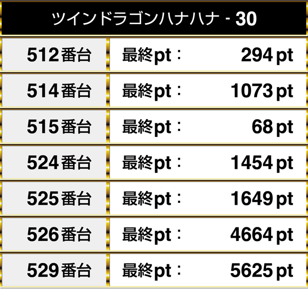 『ツインドラゴンハナハナ‐30』の20台中7台がプラスpt!