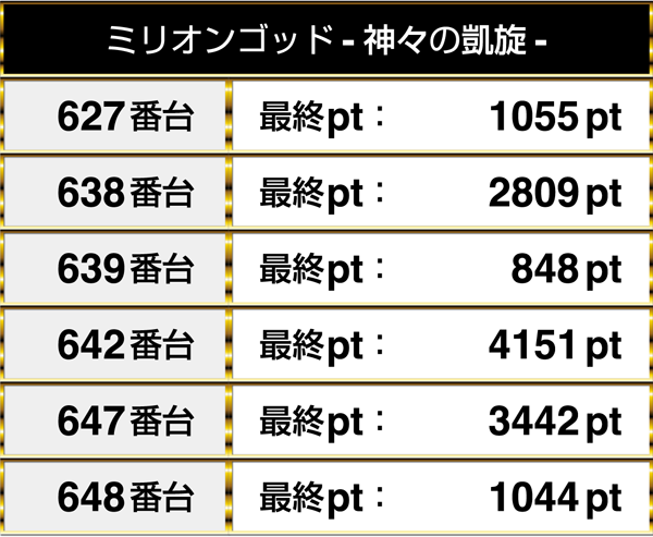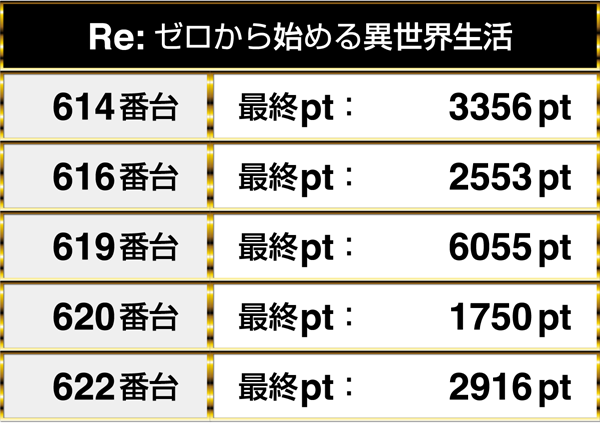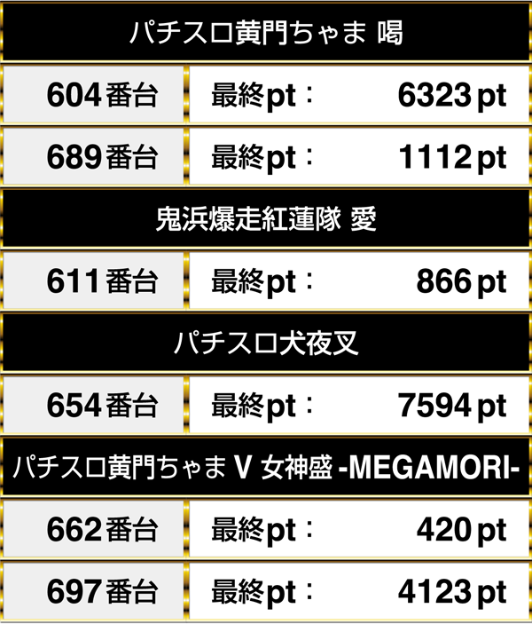 閉店時には『パチスロ黄門ちゃま 喝』の1台が6000ptを上回り、『パチスロ犬夜叉』は7000ptオーバー!