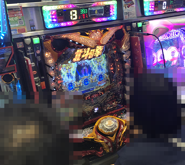 パチンココーナーにおいて、とくに目をひかれたのは機種構成がバラエティに富んだコーナーにバラバラに設置されている「P北斗の拳8覇王」。