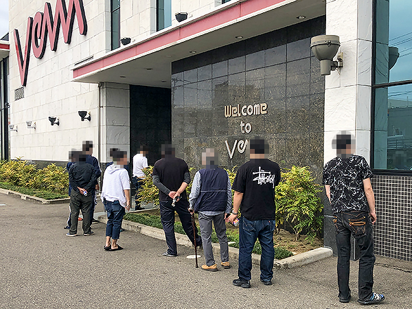 開店前からたくさんのプレイヤーが列を形成。会話を楽しみながら入店を待つ、実に和やかなシーンを目にしている。