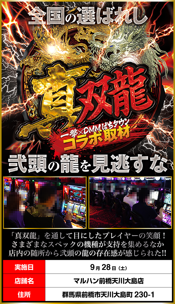 入店してから退店するまでのあいだに、「マルハン前橋天川大島店」にある多くの魅力と出会った「真双龍」となった。