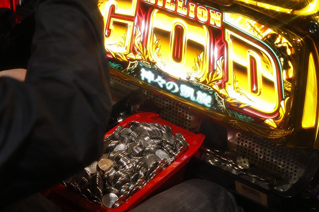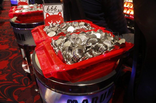 鳴りやまない大当りのファンファーレと、驚異的なスピードで積まれていく玉箱には毎度の事ながら驚かされる。