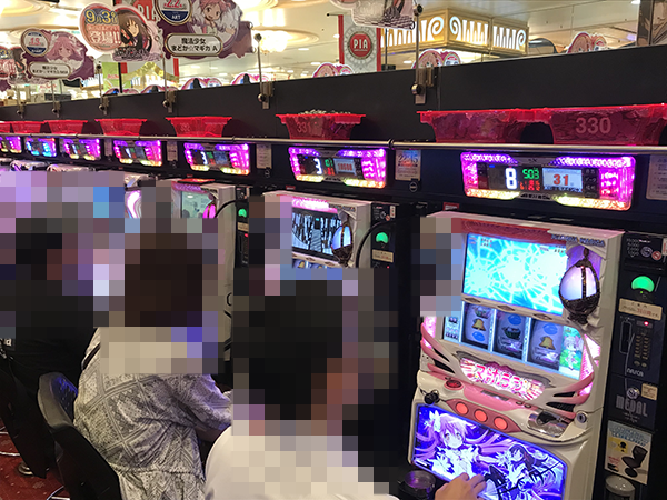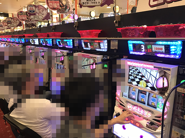 入店するとすぐに、入り口付近に設置されている「SLOT魔法少女まどか☆マギカ」から盛り上がりが感じられた。思わず興味をひかれて眺めていると、プレイヤーたちが披露する華麗なパフォーマンスがつぎつぎと目に映ったことを覚えている。