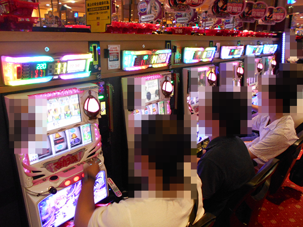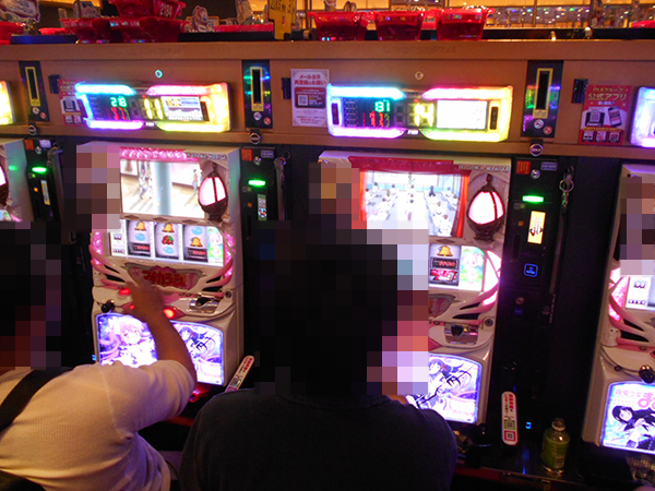1階のパチンコフロアも活況であったが、もっとにぎわっていたのは2階のパチスロフロア。8割以上の台が稼働しており、機種の新旧やスペックを問わずにさまざまなシマが明るいムードに包まれていた。
