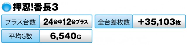 24台中12台がプラスで全台差枚数が+35,103枚。