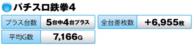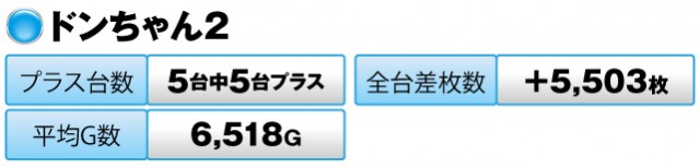 5台中3台がプラスで全台差枚数は+10,368枚を記録した。