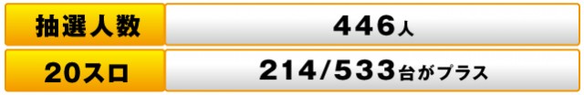 パチスロ全体では、453台中214台がプラスで、トータルの差枚数は+163,461枚という結果に。