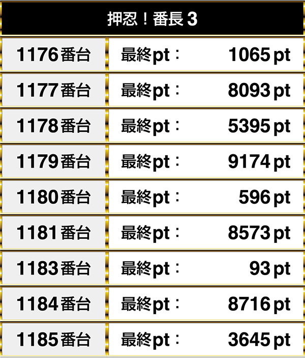 プラスptが3台以上、並んでいる2箇所は最終的にトータルで7割以上の台が1000ptを上回っていた。