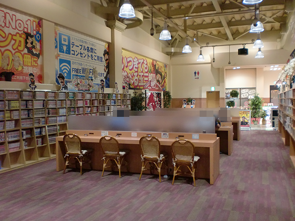 店内には広々としたレストスペースが完備されている。漫画が大量に用意されているところが個人的にうれしいポイントであり、休憩中も遊技とはちがった楽しさを感じられそうだ。