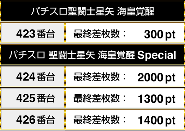 『パチスロ聖闘士星矢 海皇覚醒』と『パチスロ 聖闘士星矢 海皇覚醒Special』は、2機種を通して4台並びでプラスptを記録!