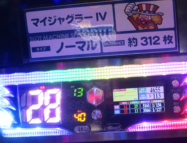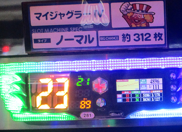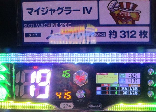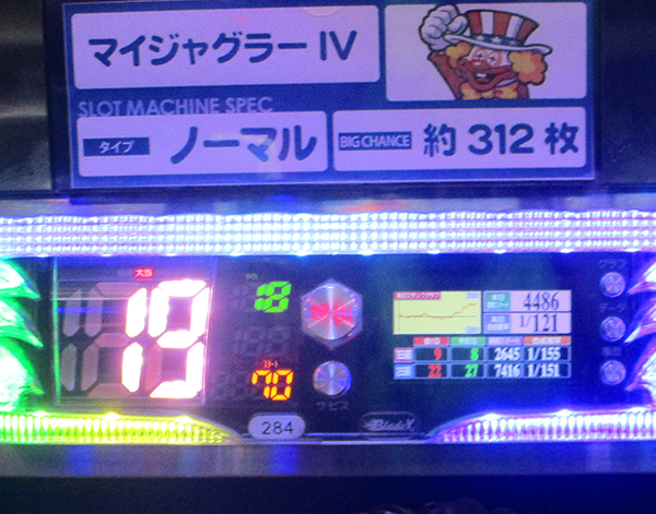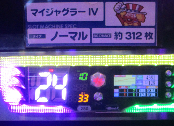 この日、もっとも多かったボーナス当選回数は『マイジャグラーⅣ』の74回!