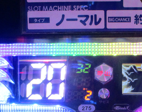 17時を過ぎた頃にデータカウンターをみると、7台に30回以上のボーナス回数がついていた。そのうちの4台は40回を上回り、もっともボーナス回数が多かった台は52回だ。