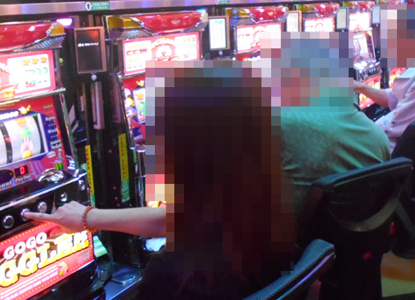 黄金に輝く笑顔を求めて、にぎわいが感じられるパチスロコーナーへレッツゴー!!