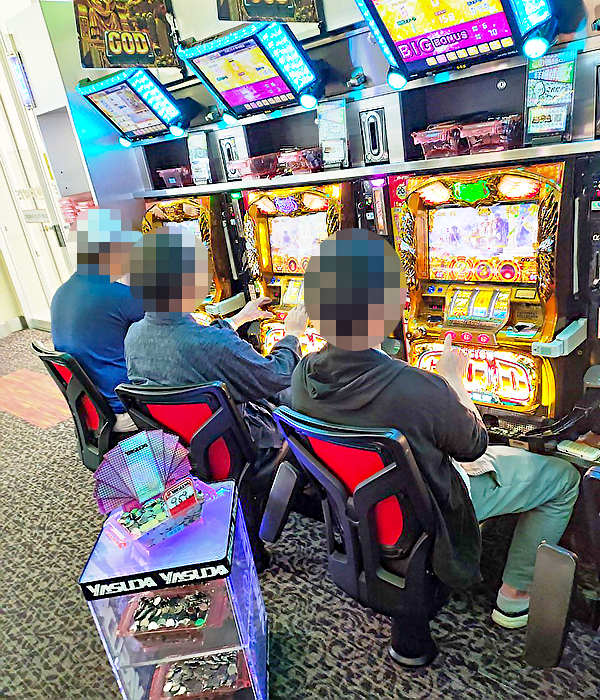 5円・2円パチスロに目を移すと、楽しそうにレバーを叩くプレイヤーの姿が至る所で見られた。