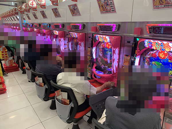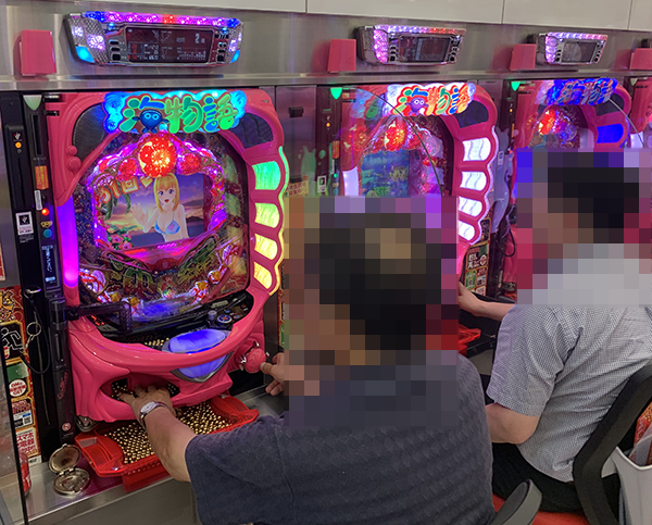 興味をひかれてシマ内に入っていくと、プレイヤーたちの輝くような笑顔がつぎつぎと目に映った。談笑しながら遊技をおこなうシーンやうれしそうに画面を眺めている姿など、数々の楽しげな光景を確認。シマの端から端まで歩いているだけで、にぎわいが伝わってきた。