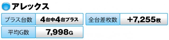 4台すべてがプラスで全台差枚数は+7,255枚を記録。
