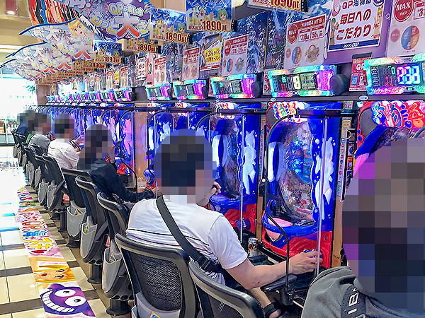 14時過ぎの4円パチンコでは「ぱちんこ 新・必殺仕置人」や「CR大海物語4」、「CR大海物語4 BLACK」が盛況で、機種のポテンシャルをフルに活かすプレイヤーを複数確認している。