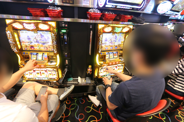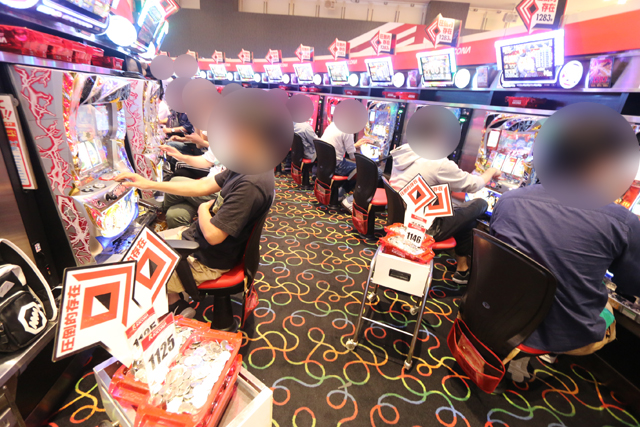 いずれも人気シリーズとはいえ、これだけの大量設置でこの稼働は天晴れ! 状況を見てもドル箱がしっかりと溢れ出す盛況で、多くのプレイヤーが笑顔に包まれていた。