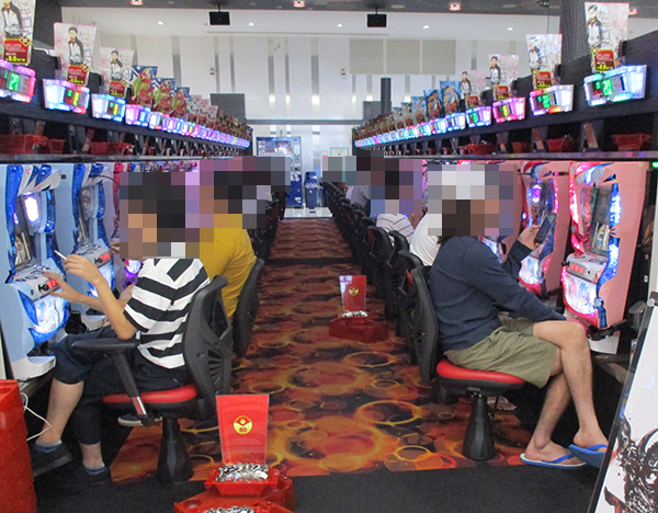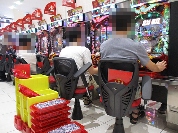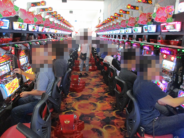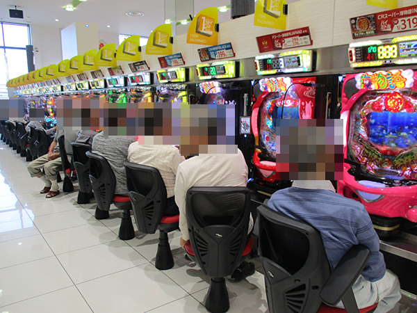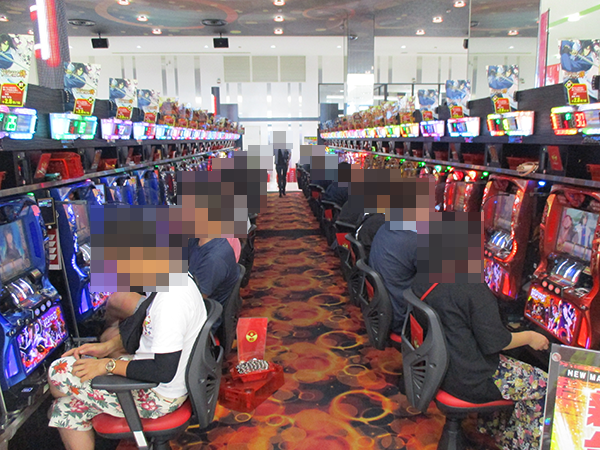 取材を開始した15時ごろの店内は、パチンコとパチスロの各シマに鮮やかな光景が広がっていた。